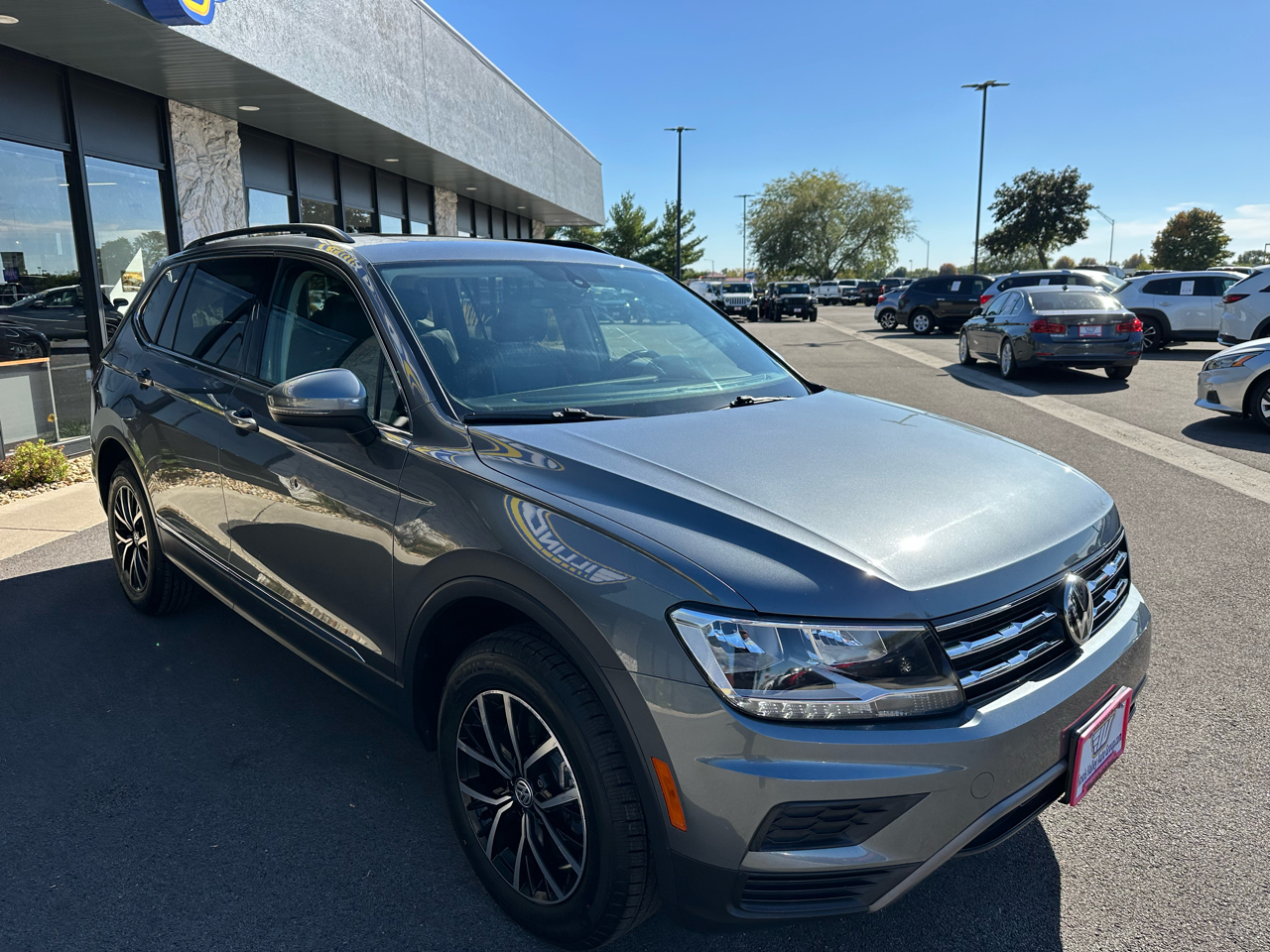 Drive in comfort and style with this 2021 Volkswagen Tiguan SE! Powered by a 2.0L Turbo engine and automatic transmission, this gray FWD SUV delivers a smooth, efficient ride. Enjoy premium leather seating, a power sunroof, dual-zone climate control, and steering wheel-mounted controls. Stay connected with voice-activated features, telematics, and a trip computer. With heated mirrors, power locks and power windows this Tiguan SE offers the perfect mix of practicality and sophistication.
