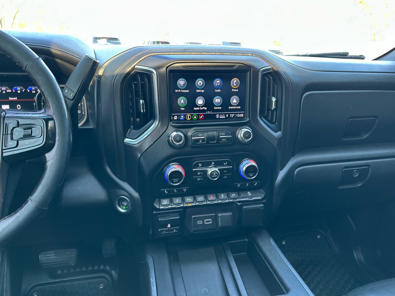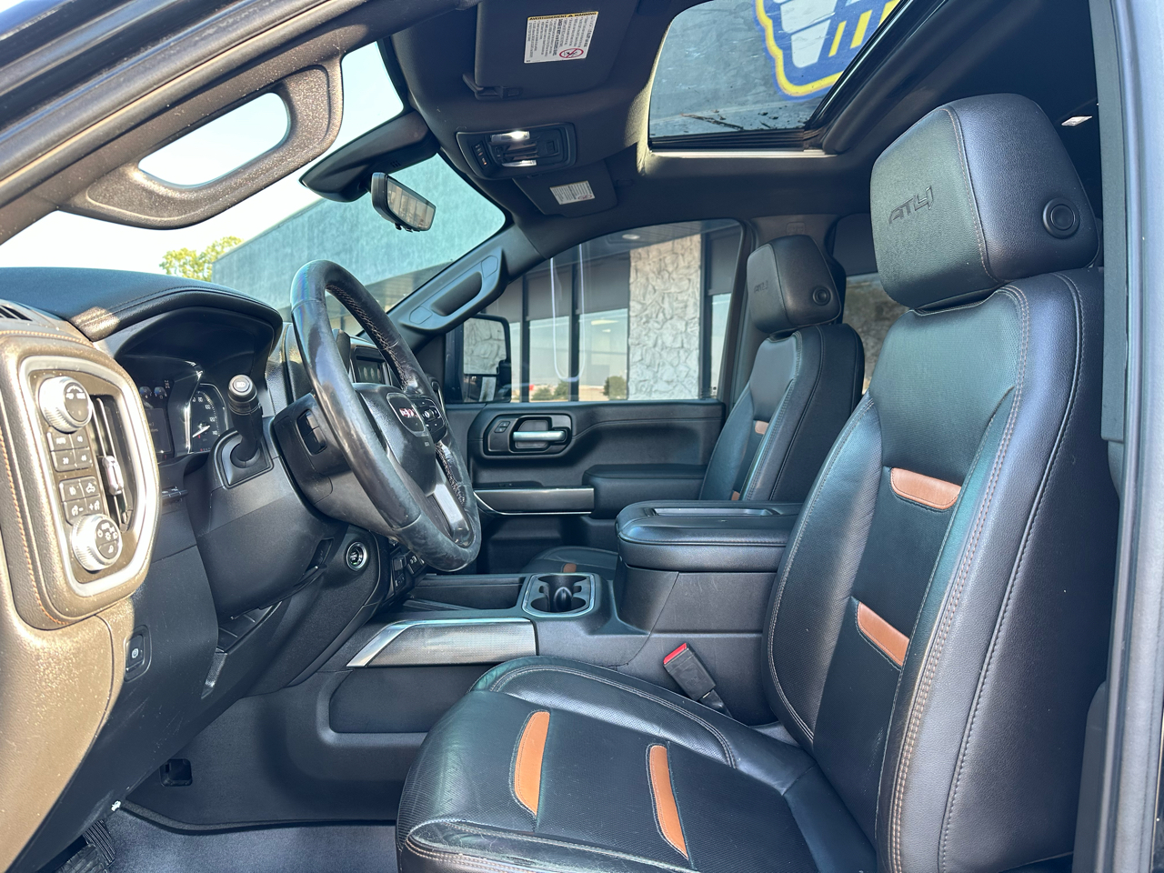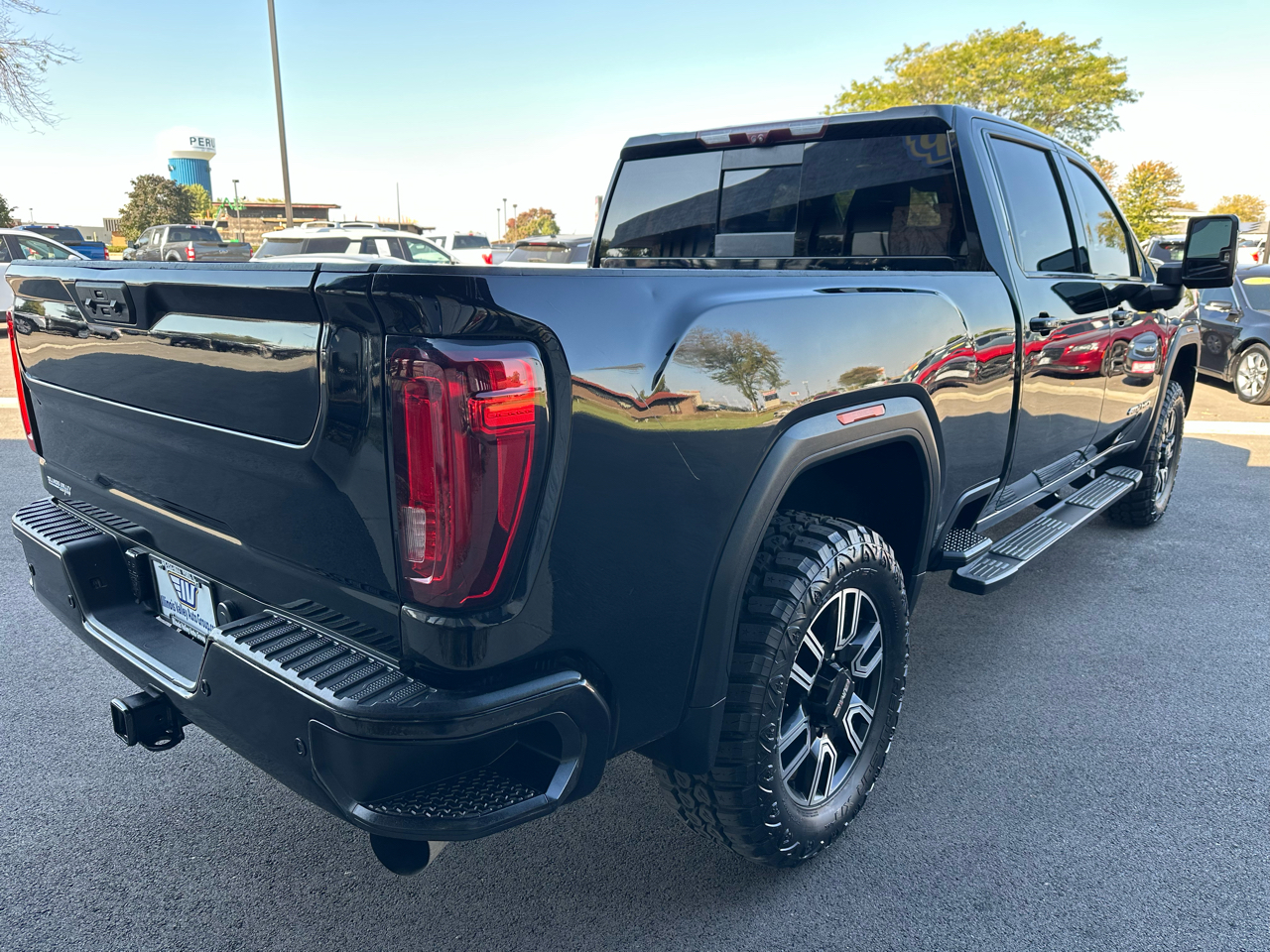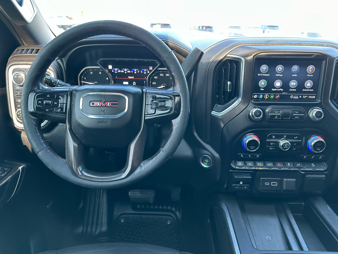 The 2021 GMC Sierra 2500HD AT4 Crew Cab is a premium heavy-duty pickup built for both rugged performance and refined comfort. Powered by a robust Duramax 6.6L Turbo-Diesel V8 engine paired with an Allison 10-speed automatic transmission, this truck delivers incredible towing capability and torque for the toughest jobs. Its bold Ebony Twilight Metallic exterior is matched with a Jet Black interior accented by Kalahari stitching, giving it a commanding and upscale presence. The AT4 trim adds off-road capability with features like an off-road suspension, skid plates, hill descent control, and red recovery hooks. Inside, the Sierra 2500 AT4 offers heated and ventilated front seats, a heated steering wheel, dual-zone climate control, and advanced technology such as a large touchscreen with Apple CarPlay and Android Auto integration. Safety and convenience are enhanced with lane departure warning, front and rear park assist, and a rear vision camera. Combining work-ready strength with luxury and modern tech, the Sierra 2500 AT4 stands out as a powerful, comfortable, and adventure-ready truck.